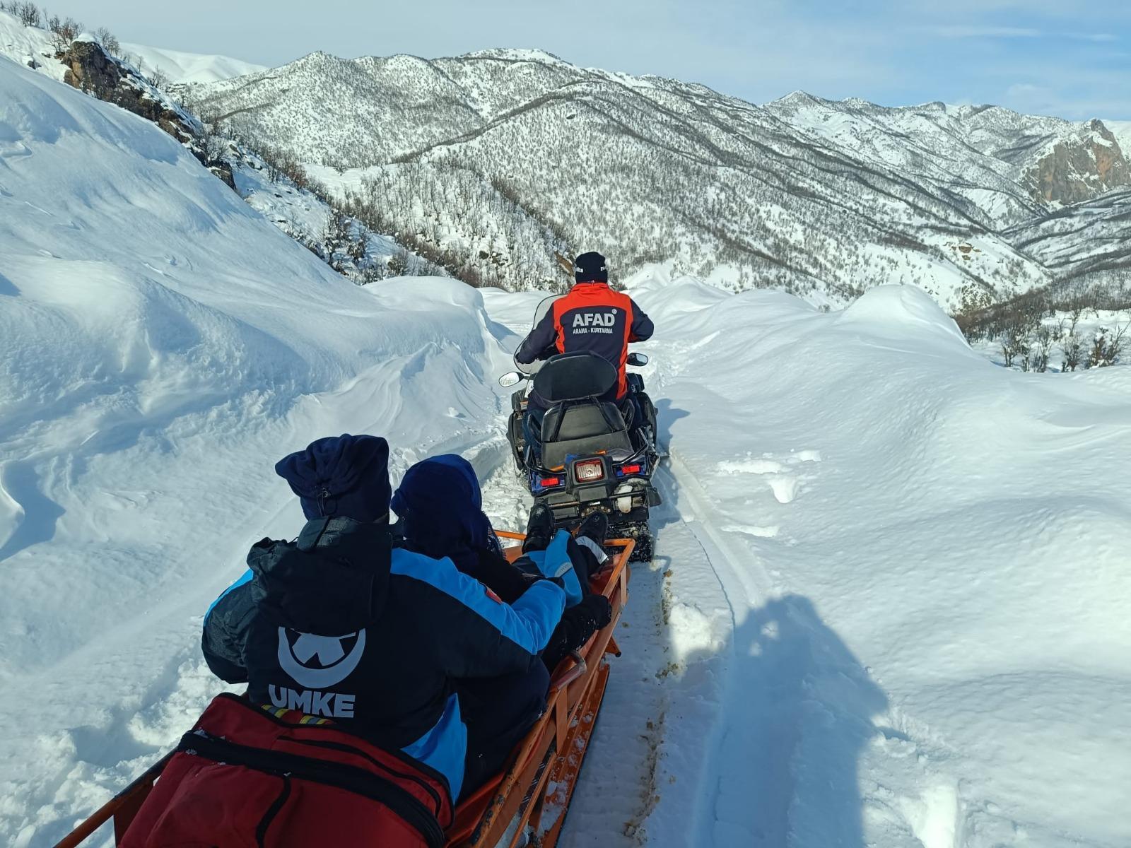 Serhat Ozan YILDIRIM/TUNCELİ, (DHA)- TUNCELİ’nin Ovacık ilçesinde kırsalda 1 metreyi bulan kar kalınlığında sağlık hizmetlerinin aksamaması için UMKE, 112 Acil Sağlık, AFAD ve İl Özel İdaresi ekipleri koordineli çalışma yürütüyor.