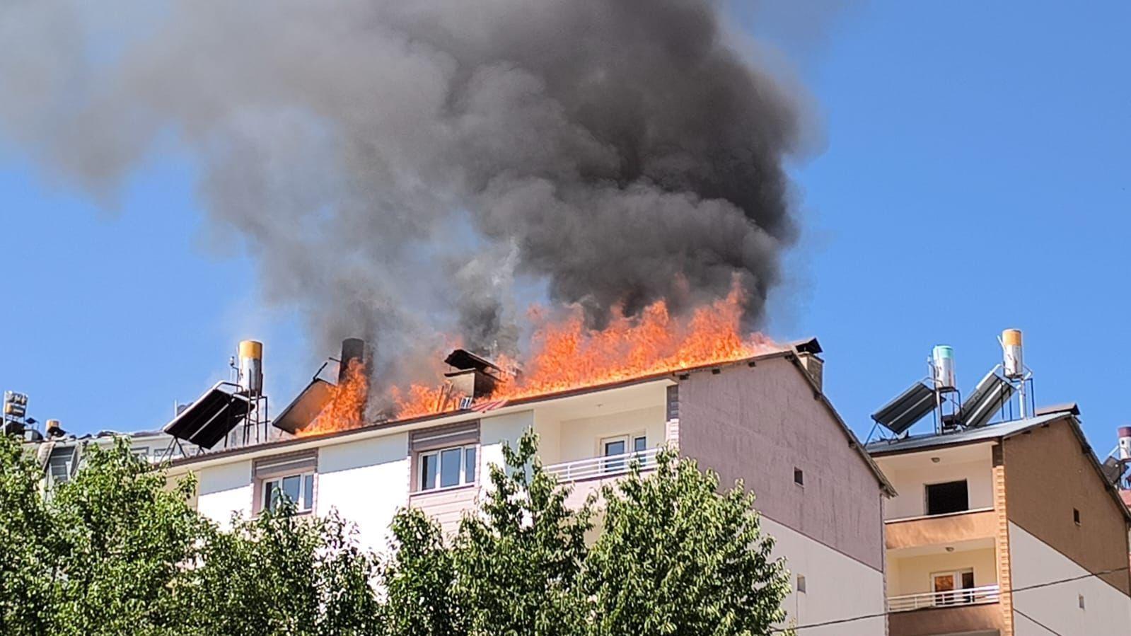 Serhat Ozan YILDIRIM/TUNCELİ, (DHA)- TUNCELİ’de 5 katlı binanın çatısında çıkan yangın, itfaiye ekiplerinin müdahalesiyle kontrol altına alınarak söndürüldü.