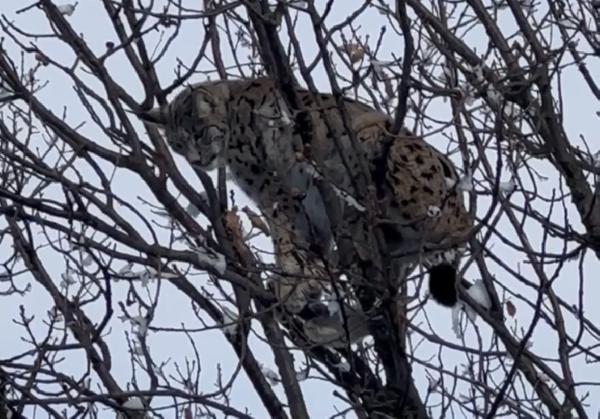 Tunceli’de köpeklerin saldırısından korunmak için ağaca çıkan vaşak kurtarıldı