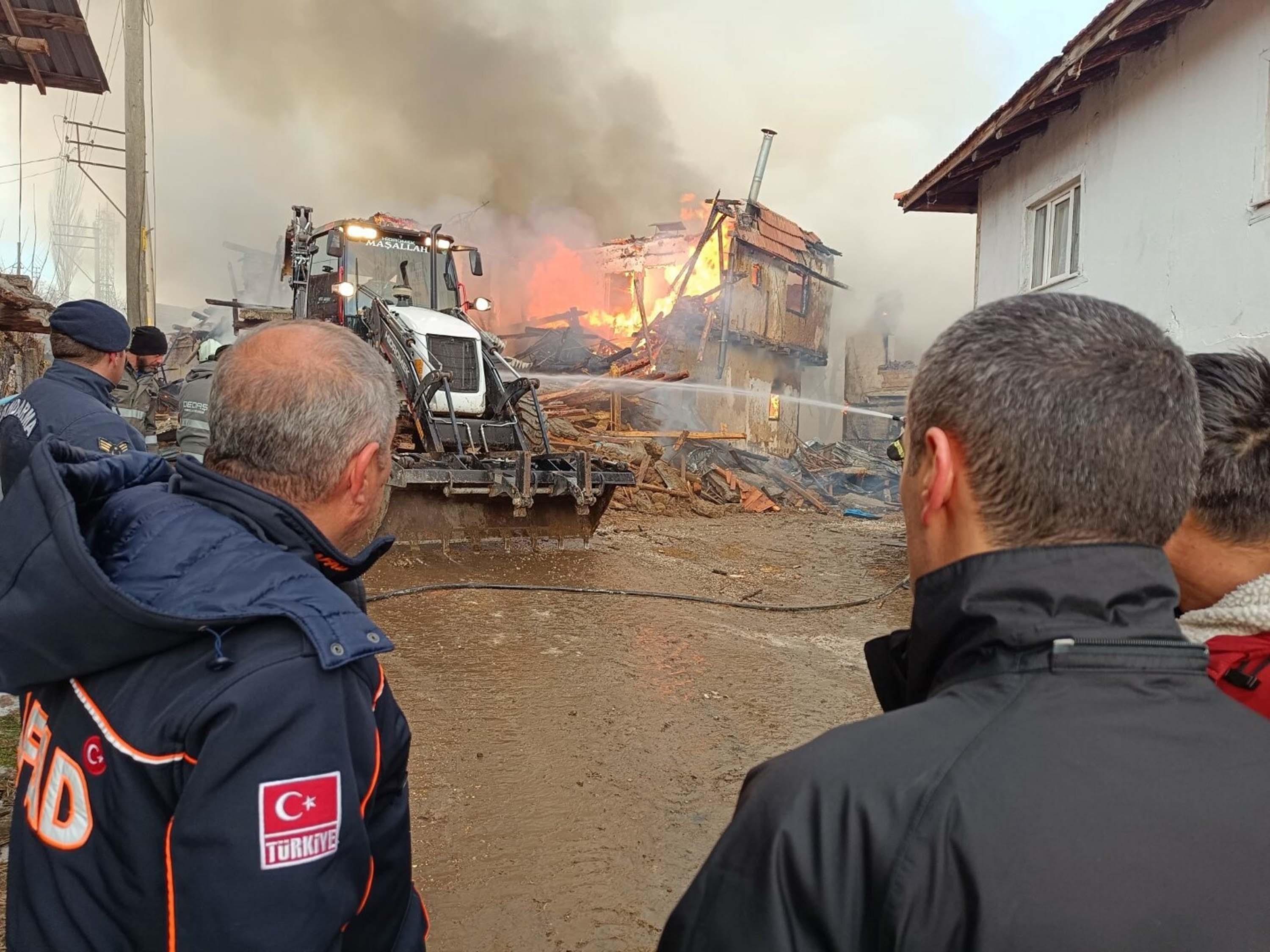 Banaz ilçesine bağlı Yukarıkaracahisar köyündeki İbrahim İnan'a ait müstakil evde, saat 03.00 sıralarında yangın çıktı. Kısa sürede büyüyen yangın, bitişiğindeki 5 eve de sıçradı. Çevredekilerin ihbarıyla bölgeye sağlık, itfaiye ve jandarma ekipleri ile arazözler sevk edildi. Ekipler, alevlerin yakındaki diğer evlere sıçramaması için yoğun çaba sarf etti. Alevler, ekiplerin 5 saatlik çalışması sonucu söndürüldü. Uşak Valisi Naci Aktaş da olay yerine gelerek yangınla ilgili Uşak İl Jandarma Komutanı Kıdemli Albay Fahri Semiz ve Uşak İl Afet ve Acil Durum (AFAD) Müdürü Burak Edin'den bilgi aldı. 4'ü atıl durumda 6 ev büyük zarar görürken, yangının çıkış nedeni araştırılıyor. (DHA)