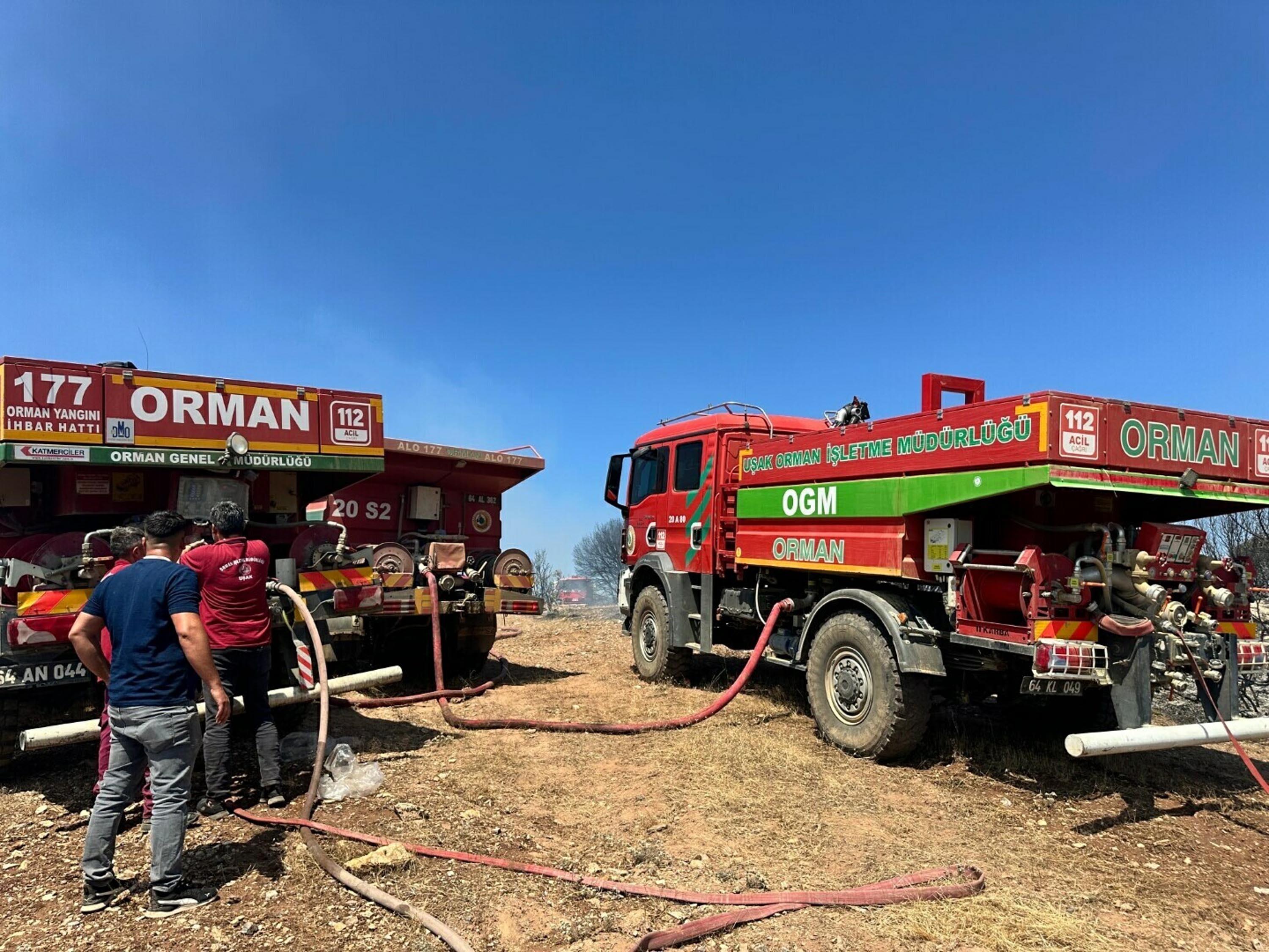 Uşak’ta saat 14.00 sıralarında merkeze bağlı Çınarcık Köyü yakınlarında arpa tarlasında çıkıp makilik alana sıçrayan yangın, 3 saatlik çalışma sonucu kontrol altına alındı. Balya makinesinden çıktığı tespit edilen yangına müdahale etmek isteyen tarla sahibi M.M.'nin ayaklarında hafif derecede yanıklar oluşurken, saman paketleme makinesini kullanan M.Ö. ise dumandan etkilendi. Tarla sahibi M.M. Uşak Eğitim ve Araştırma hastanesine sevk edilerek tedavi altına alındı. M.Ö.'ye ise ambulansta müdahale edildi. 1 helikopter, 8 arazöz, 3 su ikmal aracı, 1 itfaiye aracı ve 2 iş makinesi ile 3 saat süren müdahale ile kontrol altına alınan yangında soğutma çalışmaları devam ediyor.