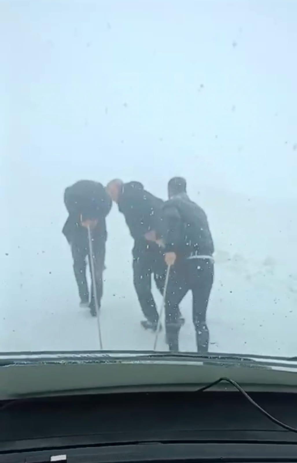 Van’da, 4-5 Şubat 2020'de meydana gelen çığ facialarında 42 kişinin yaşamını yitirdiği ve 84 kişinin yaralı kurtarıldığı Van-Bahçesaray kara yolu, bu tarihten sonra her kış mevsimi çığ riskinin bulunduğu zamanlarda ulaşıma kapatılıyor. Dün etkili olan yağış nedeniyle de kara yolu yer yer ulaşıma kapandı. Karayolları 11’inci Bölge Müdürlüğü ekipleri, yolu açmak için çalışma başlattı. Bölgede etkili olan sis nedeniyle ekipler çalışmalarını güçlükle sürdürdü. Bir minibüs yolda ilerlemekte güçlük çekince devreye içindeki yolcular girdi. Yolcular, minibüsü bağlanan halatla bir süre çekip ilerlemesini sağladı. O anlar ise bir yolcu tarafından cep telefonuyla görüntülendi. (DHA)