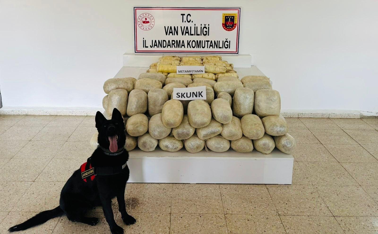 İl Jandarma Komutanlığı ekipleri, Başkale ilçesi kırsalında arazi arama tarama faaliyeti yaptı. Çalışmada arazide 56 kilo 414 gram skunk ile 50 kilo 300 gram metamfetamin ele geçirildi. Uyuşturucuyla ilgili 1 şüpheli gözaltına alındı. (DHA)