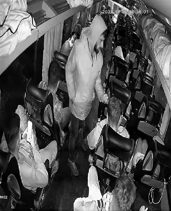 Otobüsün kaptanı Fahrettin Arı, yolcu indirmek için durdukları Adapazarı'nda dilenci görünümlü şüphelinin para toplamak için içe girdiğini belirtti. Arı, "Bedensel engelli süsü veren dilenci para toplarken uyuyan yolcumuzun telefonunu çalmış. Yolcumuzun şikayeti üzerine otobüsün kameralılarını inceledik. Ve otobüse giren kişinin, yolcumuzun telefonunu aldığını ve hiçbir şey olmamış gibi dilenmeye devam ettiğini gördük. Yetkililere bildirdik ve o şahıs şu an aranıyor. Umarım bulunur ve yolcumuzun telefonunu kendisine veririz" dedi. (DHA)