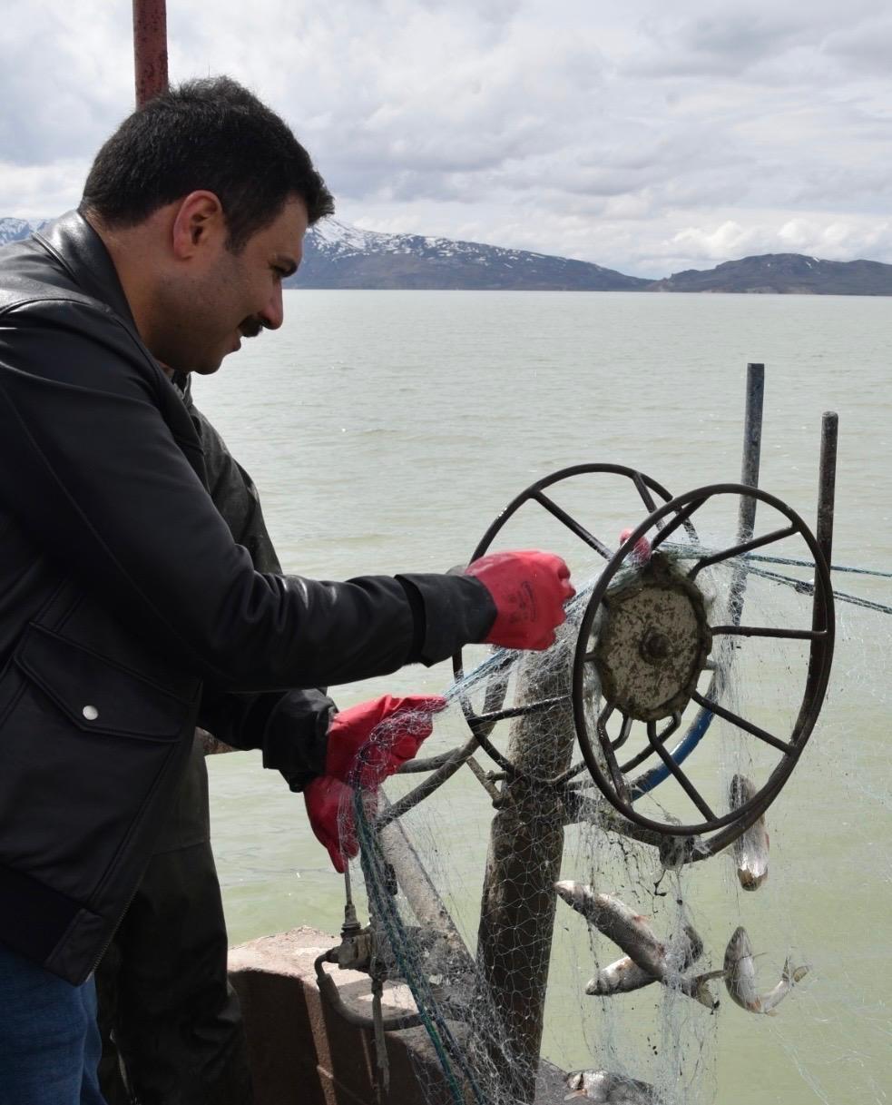 VAN,(DHA)- VAN'ın İpekyolu ilçesi Kaymakamı Tufan Bağır Gilan, Erçek Gölü’nde balık avlayan balıkçıları ziyaret ederek yürütülen çalışmalar hakkında bilgi aldı.