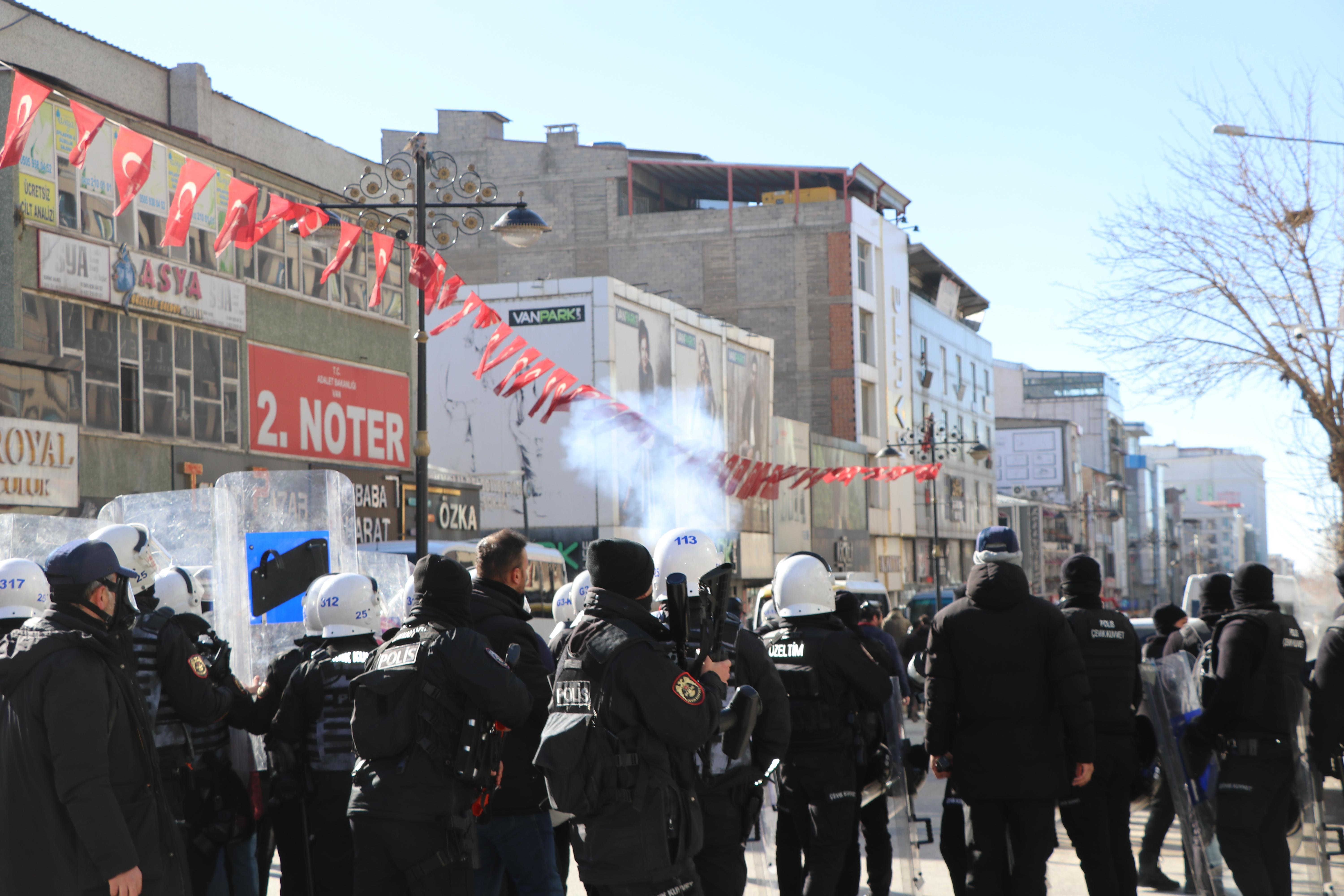 Van Büyükşehir Belediye Başkanı Abdullah Zeydan'ın İçişleri Bakanlığı tarafından geçici olarak görevden uzaklaştırılmasının ardından toplanan bir grup, Cumhuriyet Caddesi'ne yürümek istedi. DEM Parti Grup Başkanvekili Kars Milletvekili Gülistan Kılıç Koçyiğit, DEM Parti Van Milletvekili Mahmut Dindar, Hakkari Milletvekili Vezir Coşkun Parlak, görevden uzaklaştırılan Van Büyükşehir Belediye Eş Başkanları Abdullah Zeydan ve Neslihan Şedal da destek verdi. Polis, eylemin izinsiz olduğu gerekçesiyle gruba izin vermedi. Polisin yaptığı uyarı anonslarına rağmen grup yürümekte ısrar etti. Bunun üzerine polis ekipleri polis göz yaşartıcı bomba ve TOMA aracından su sıkarak gruba müdahalede bulundu, bazı kişileri gözaltına aldı.