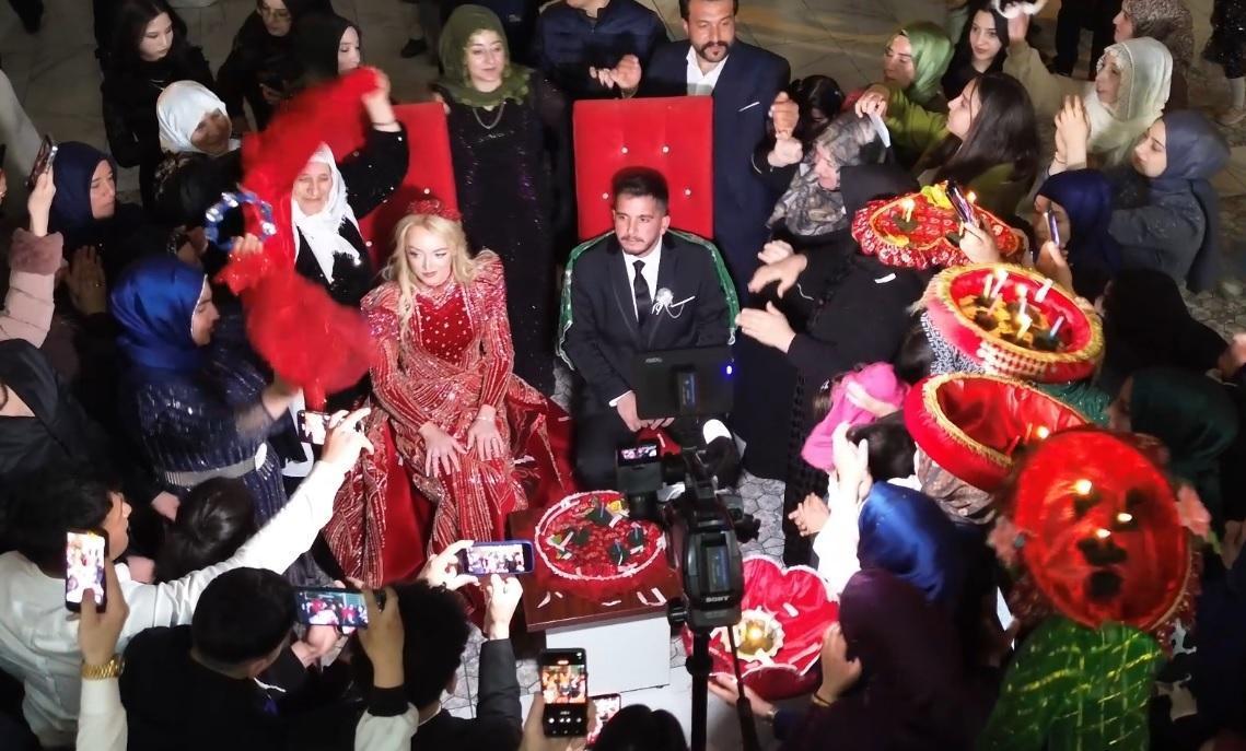 Van’daki bir düğün salonunda gerçekleştirilen törene çiftin yakınları ve çok sayıda davetli katıldı. Renkli görüntülere sahne olan düğünde davetliler, Kürtçe ve Türkçe müzik eşliğinde halaylar çekti.