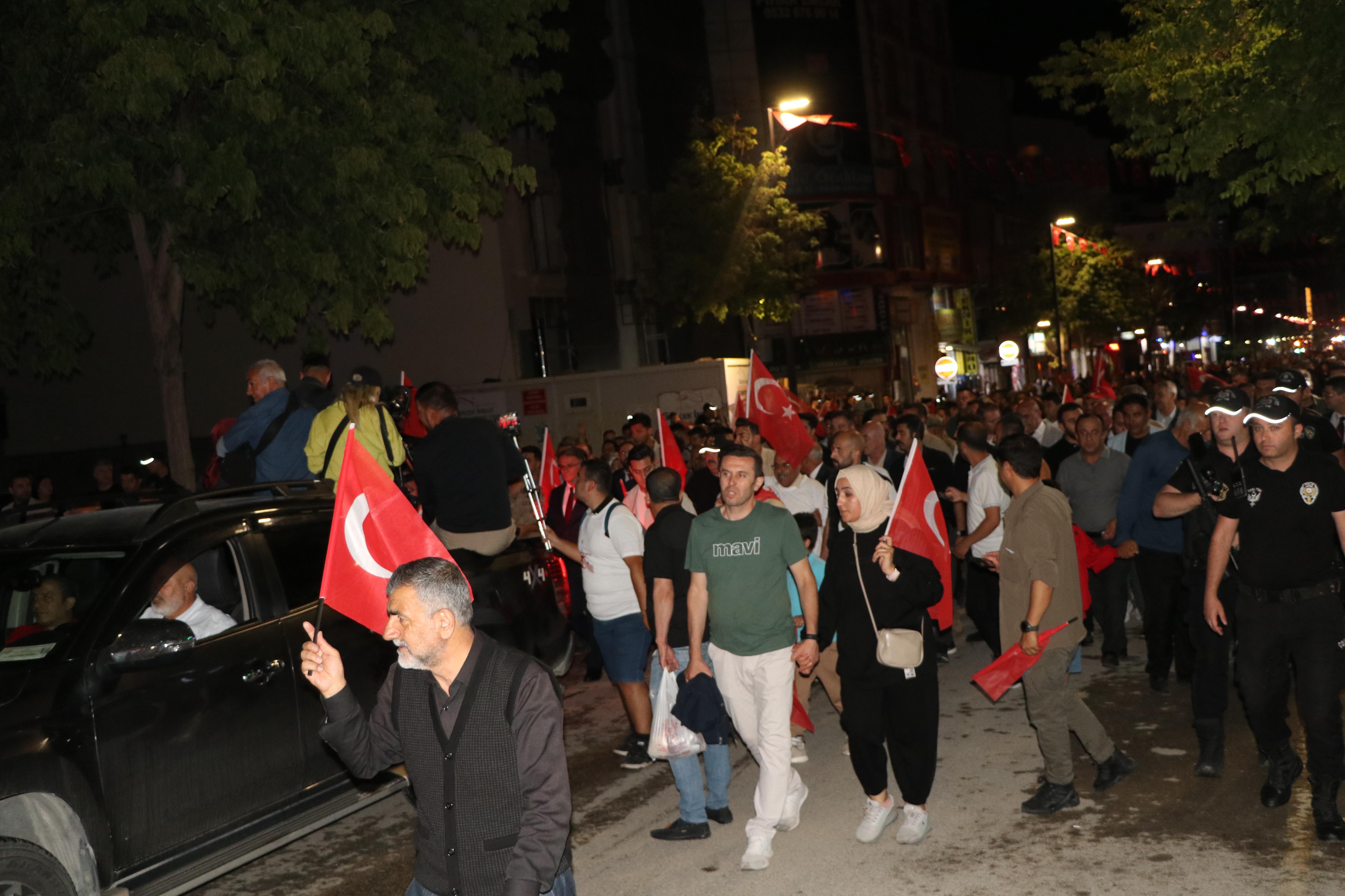 Behçet DALMAZ/ VAN, (DHA)- VAN'da ‘15 Temmuz Demokrasi ve Milli Birlik Günü’ etkinliği kapsamında düzenlenen 'Demokrasi Yürüyüşü'ne katılanlar, ellerinde Türk bayraklarıyla kentin Beşyol meydanına kadar yürüdü.