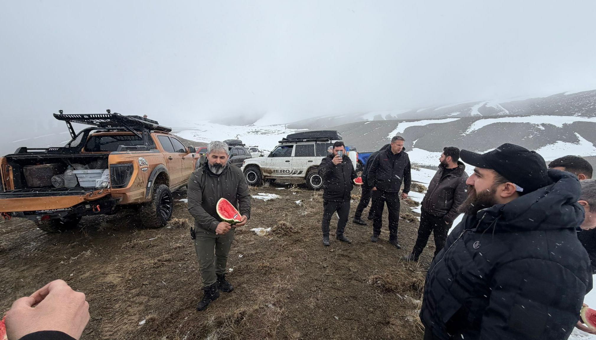 Kentte esnaflık yapan İlhan İler’in öncülüğünde yaklaşık 1,5 yıl önce 3 kişiyle kurulan ve bugün 53 üyeye ulaşan Vangölü Off-Road ekibi, kentin doğal ve tarihi güzelliklerini tanıtmak amacıyla düzenlediği etkinliklerine devam ediyor. Son olarak 5 arazi aracı ve 7 sporcunun katılımıyla düzenlenen etkinlikte, ekip 3 bin 204 rakımlı Erek Dağı yakınlarındaki dağlık alana tırmandı. Karlı ve çamurlu zeminde ilerleyen araçlar, zaman zaman zor anlar yaşarken, katılımcılar hem doğayla mücadele etti hem de adrenalin dolu bir deneyim yaşadı. Zorlu parkurlara rağmen Off-Road tutkunları, kar ve çamura aldırış etmeden parkuru tamamlamayı başardı.