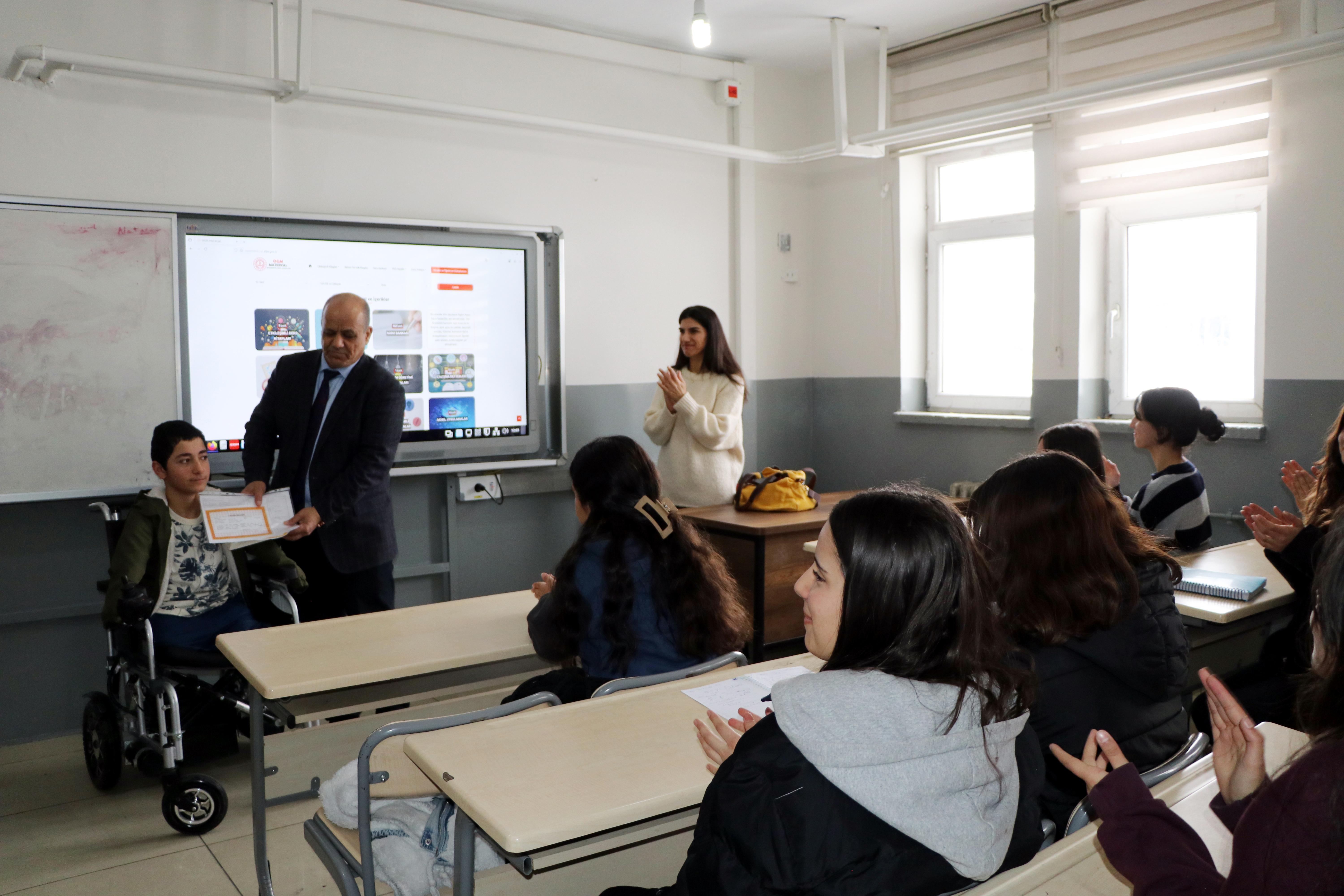 Öte yandan, Okul Müdürü Seçkin, Nakşin Özdemir ile birlikte evde eğitim gören 5 öğrenciye yarıyıl tatilinde okumaları için birer kitap hediye etti. Vali Haydar Anadolu Lisesi öğretmenleri haftanın 5 günü yapılan program dahilinde evde eğitim görev 5 öğrencinin evlerine giderek eğitim veriyor. (DHA)