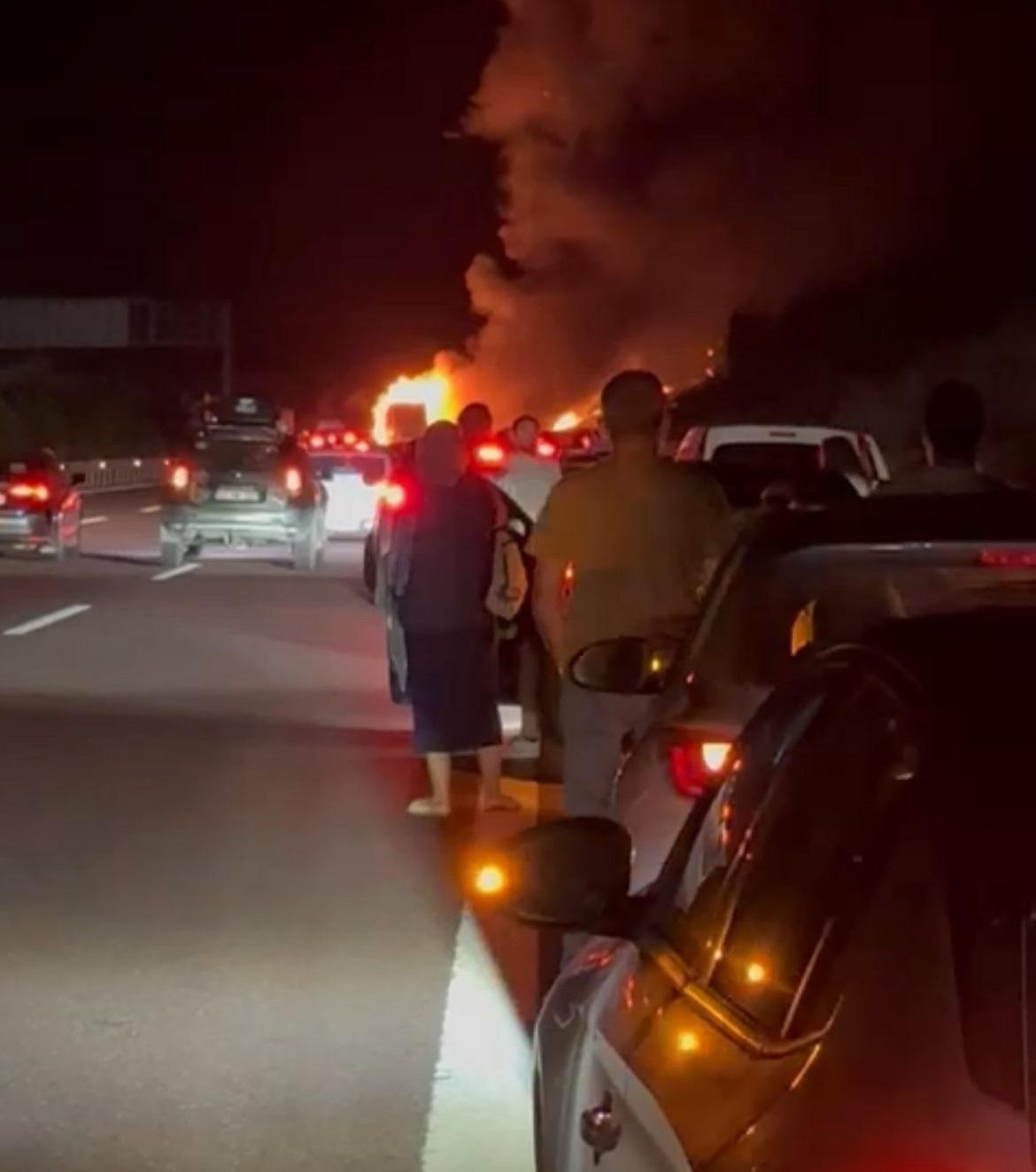 Olay, gece yarısı Gebze-İzmir-İstanbul Otoyolu bağlantı noktasında meydana geldi. Sürücüsünün kimliği henüz belirlenemeyen seyir halindeki TIR’ın motor bölümünden dumanlar yükselmeye başladı. Sürücü, aracı kenara çekerken TIR bir anda alev topuna döndü. İhbar üzerine olay yerine itfaiye ve polis ekipleri sevk edildi. Polis ekipleri, çevrede güvenlik önlemi alarak trafik akışını tek şeritten kontrollü olarak sağladı. İtfaiye ekipleri ise yaklaşık 30 dakikalık müdahalenin ardından yangını kontrol altına alarak söndürdü. Yaralanan olmazken, TIR kullanılamaz hale geldi.