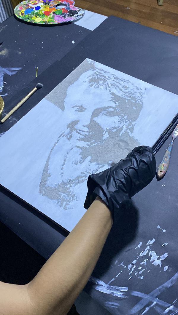 Portrenin yapım sürecini de anlatan Lokmacı, "Çok araştırma yaptım, küllerden daha önce resim yapılmış ama formunu bozmadan çalışan ilk kişi olduğumu düşünüyorum. Suyla karıştırılmış ya da akrilik boya karıştırılarak yapılmış portreler var ama formunu bozmadan silüet olarak külleri tuval üzerinde gösteren ilk kişiyim, diyebilirim. Kendisinin en sevdiği şarkı 'Somewhere Over the Rainbow', 15 saattir bu şarkıyla çalışıyorum. Çok huzur dolu bir çalışma oldu benim için. Onunla sohbet ediyor gibiyim. Duygu yüklü bir deneyimdi. Onu gerçekten yıllardır tanıyor gibiyim oysa hiç yüzünü bile görmedim" diye konuştu. (DHA)