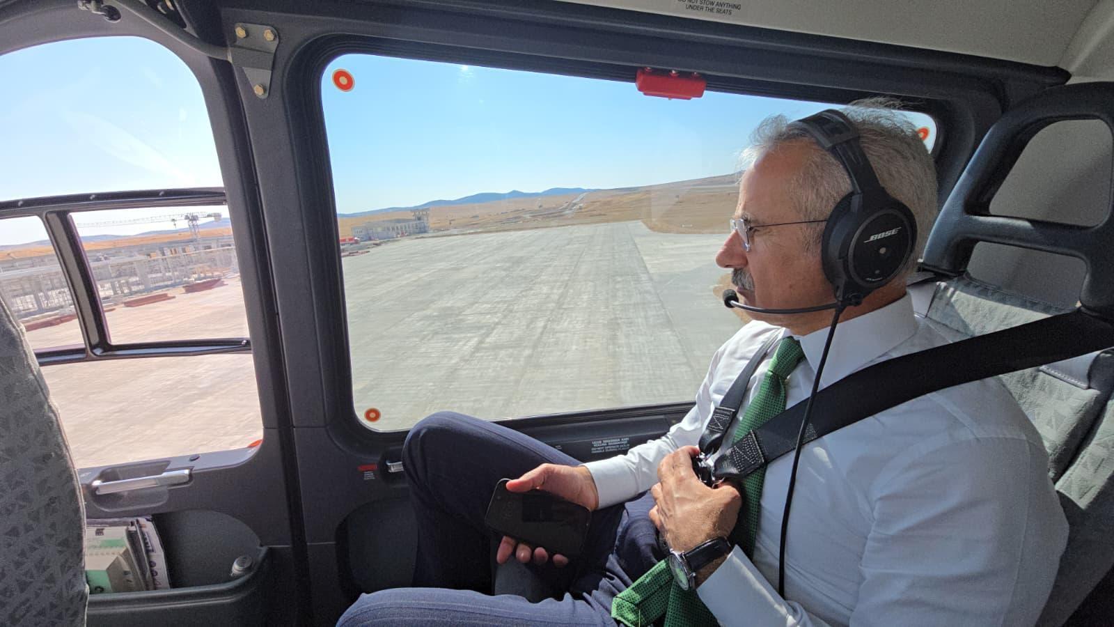 Ulaştırma ve Altyapı Bakanı Abdulkadir Uraloğlu, yapımı devam eden Yozgat Havalimanı'ndaki çalışmaları yerinde inceleyerek yetkililerden bilgi aldı. Bakan Uraloğlu, helikopterle yaptığı hava denetimi sırasında da proje sahasını detaylı biçimde gözlemledi. (DHA)