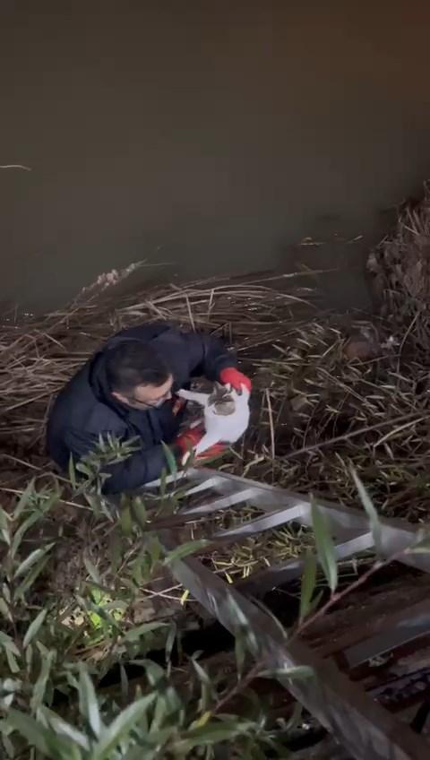 Zonguldak'ta 1 ayda 3'üncü kez çaya düşen kediyi iffaiye kurtardı