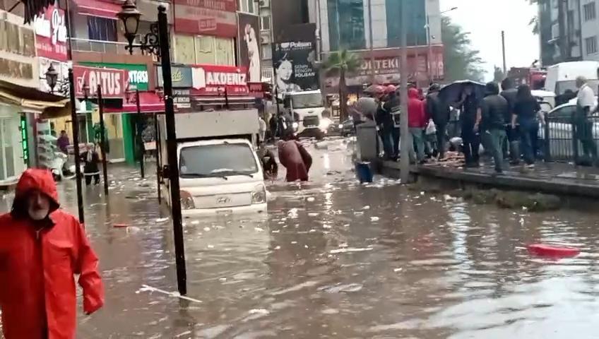 EREĞLİ'DE DOLU ETKİLİ OLDU, CADDELERİ SU BASTI